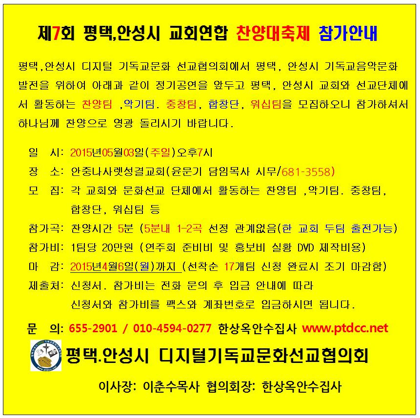 Á¦ 7ȸ ÆòÅÃ,¾È¼º½Ã ±³È¸¿¬ÇÕ Âù¾ç´ëÃàÁ¦ Âü°¡¾È³»