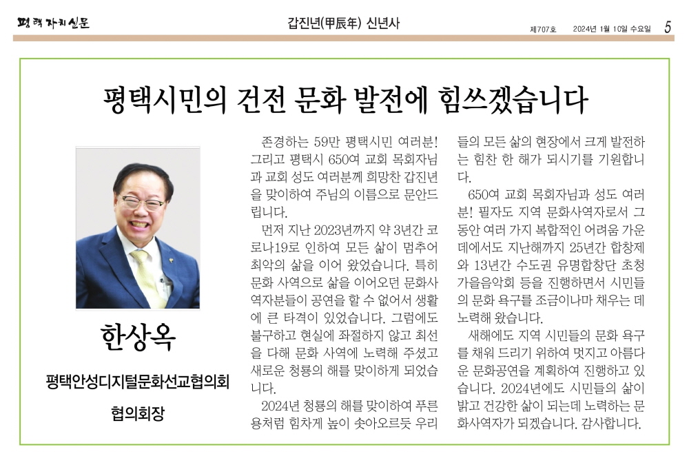 »õÇØ¿¡µµ Áö¿ª ½Ã¹ÎµéÀÇ ¹®È­ ¿å±¸¸¦ ä¿ö µå¸®±â À§ÇÏ¿© ¸ÚÁö°í ¾Æ¸§´Ù¿î ¹®È­°ø¿¬À» °èȹÇÏ¿© ÁøÇàÇϰí ÀÖ½À´Ï´Ù. 2024³â¿¡µµ ½Ã¹ÎµéÀÇ »îÀÌ ¹à°í °Ç°­ÇÑ »îÀÌ µÇ´Âµ¥ ³ë·ÂÇÏ´Â ¹®È­»ç¿ªÀÚ°¡ µÇ°Ú½À´Ï´Ù. °¨»çÇÕ´Ï´Ù.