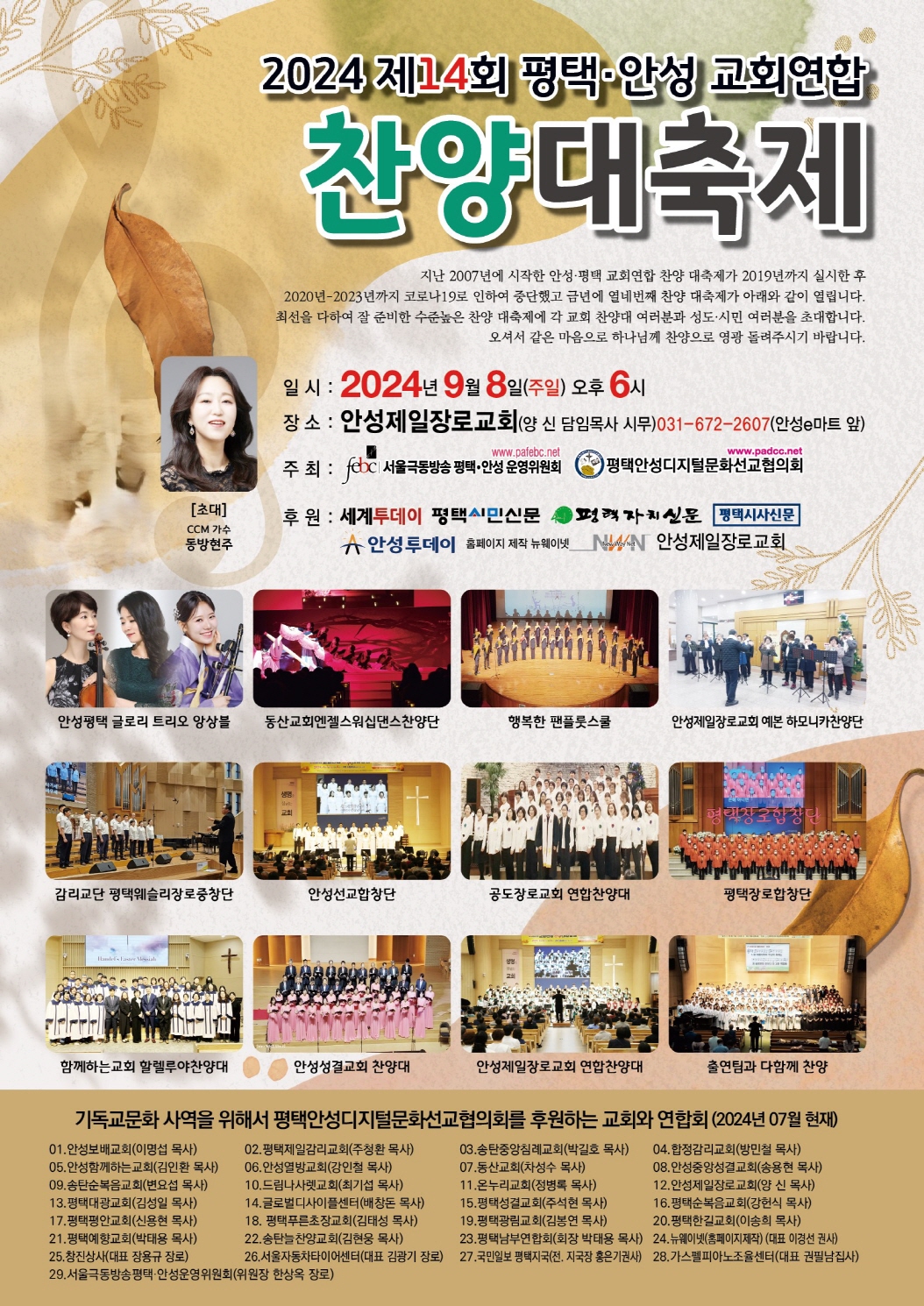 9¿ù8ÀÏ(ÁÖÀÏ)¿ÀÈÄ6½Ã ¾È¼ºÆòÅà ±³È¸¿¬ÇÕ Âù¾çÃàÁ¦ ¾È³»