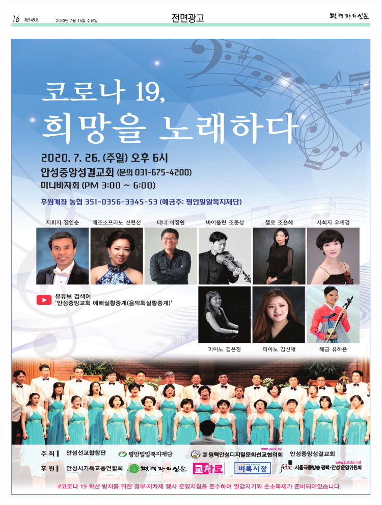 À§·ÎÀ½¾Çȸ °ø¿¬ ½ÇȲÀº <¾È¼ºÁß¾Ó±³È¸> À¯Æ©ºê ¹æ¼ÛÀ» ÅëÇØ °ø¿¬Àå°ú ¿Â¶óÀÎÀ¸·Î µ¿½Ã »ýÁß°è µÈ´Ù.