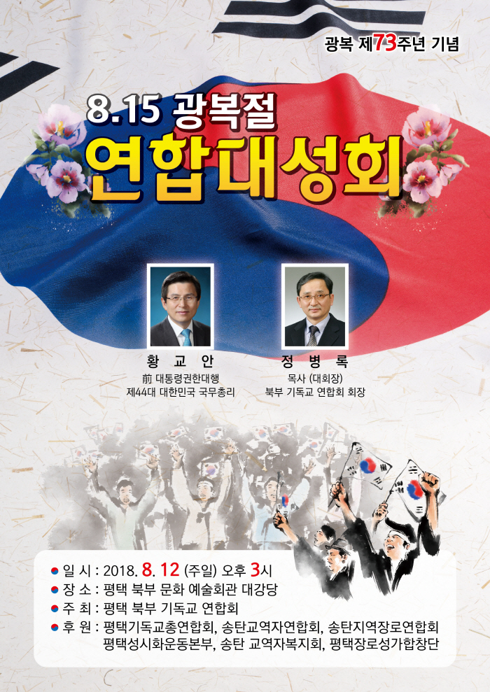 ÆòÅ᤾ȼºÁö¿ª ±âµ¶±³¿¬ÇÕȸ´Â Á¦73ÁÖ³â 8.15 ±¤º¹ÀýÀ» ¸ÂÀÌÇÏ¿© ¿¬ÇÕ¿¹¹è¸¦ °®´Â´Ù.