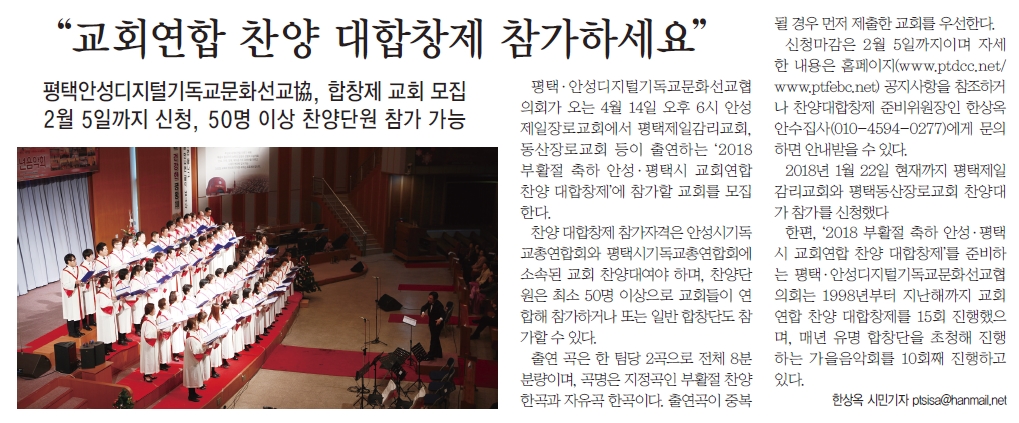 ÇÑÆí, ¡®2018 ºÎȰÀý ÃàÇÏ ¾È¼º¡¤ÆòÅýà ±³È¸¿¬ÇÕ Âù¾ç ´ëÇÕâÁ¦¡¯¸¦ ÁغñÇÏ´Â ÆòÅ᤾ȼºµðÁöÅб⵶±³¹®È¼±±³ÇùÀÇȸ´Â 1998³âºÎÅÍ Áö³ÇرîÁö ±³È¸¿¬ÇÕ Âù¾ç ´ëÇÕâÁ¦¸¦ 15ȸ ÁøÇàÇßÀ¸¸ç, ¸Å³â À¯¸í ÇÕâ´ÜÀ» ÃÊÃ»ÇØ ÁøÇàÇÏ´Â °¡À»À½¾Çȸ¸¦ 10ȸ° ÁøÇàÇϰí ÀÖ´Ù.