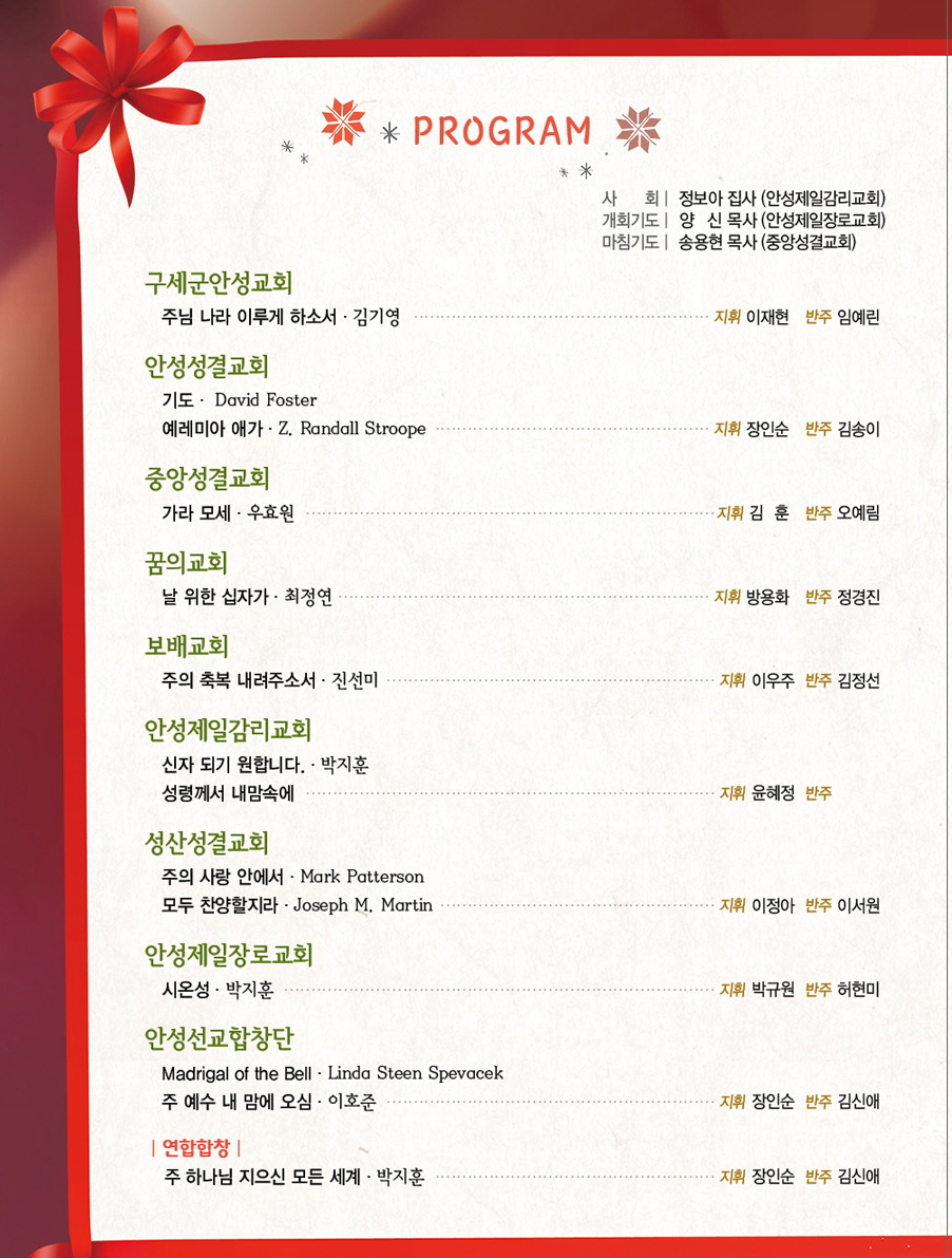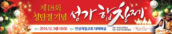¿À´Â2016³â12¿ù3ÀÏ(Åä)¿ÀÈÄ6½Ã °æ±âµµ ¾È¼º½Ã ¾È¼ºÁ¦ÀÏÀå·Î±³È¸¿¡¼ ¾È¼º¼±±³ÇÕâ´ÜÀÌ ÁÖÃÖÇÏ°í ¾È¼º½Ã ±âµ¶±³ÃÑ¿¬ÇÕȸ°¡ ÈÄ¿øÇÏ´Â Á¦18ȸ ¼ºÅºÃàÇÏ ¾È¼º½Ã ±³È¸¿¬ÇÕ ¼º°¡ÇÕâÁ¦°¡ ¿¸°´Ù.