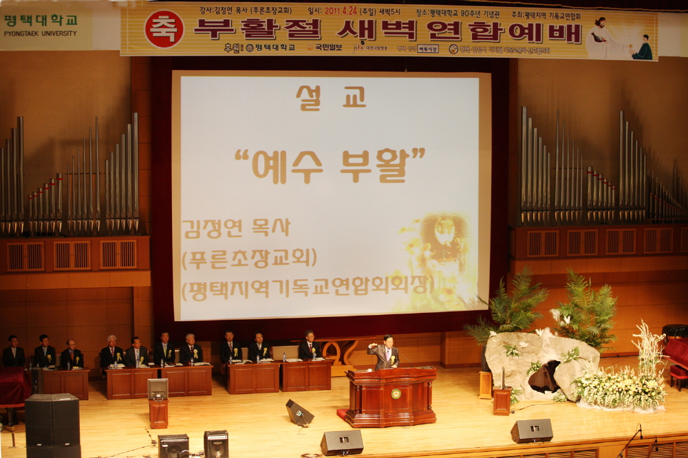 1. ¸ÕÀú ÆòÅýà ±âµ¶±³¿¬ÇÕȸ ³²ºÎÁö¿ªÈ¸(ȸÀå ±èÁ¤¿¬¸ñ»ç)´Â Áö³­ 2011³â4¿ù24ÀÏ(ÁÖÀÏ)¿ÀÀü5½Ã ÆòÅôëÇб³ 90ÁÖ³â±â³ä°ü¿¡¼­ ¿¬ÇÕȸÀå ±èÁ¤¿¬¸ñ»ç(Ǫ¸¥ÃÊÀ屳ȸ)ÀÇ ¼³±³·Î ¿¬ÇÕ¿¹¹è¸¦ µå·È°í