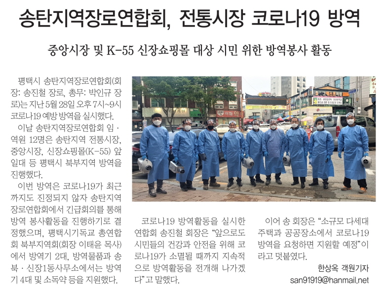 ÆòÅýà ¼ÛźÁö¿ªÀå·Î¿¬ÇÕȸ(ȸÀå: ¼ÛÁøÃ¶ Àå·Î, Ãѹ«: ¹ÚÀÎ±Ô Àå·Î)´Â Áö³­ 5¿ù 28ÀÏ(±Ý) ¿ÀÈÄ 7½Ã~9½Ã Äڷγª19 ¿¹¹æ ¹æ¿ªÀ» ½Ç½ÃÇß´Ù.