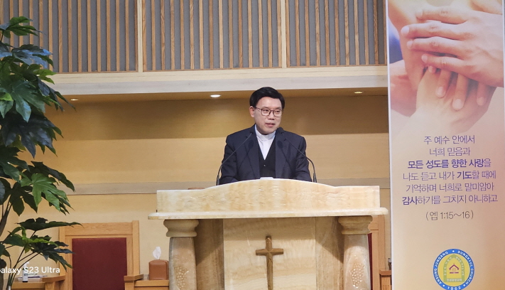 ÀÌ¾î ¾È±âÃÑ ÃÑȸÀå ¿À¸íµ¿ ¸ñ»ç°¡ µî´ÜÇÏ¿© ¡®º» ¹Þ´ÂÀÚ¡¯¶ó´Â ÁÖÁ¦ÀÇ ¼³±³¿¡¼ ¡°Äڷγª ÀÌÈÄ ±³È¸°¡ »çȸ·ÎºÎÅÍ ÀÒ¾î¹ö¸° ½Å·Ú¸¦ ȸº¹Çϱâ À§ÇØ ¸ÕÀú ¸ñȸÀÚµéÀÌ ±×¸®½ºµµ¸¦ º»¹Þ¾Æ¾ß ±³È¸°¡ Á¤Á÷ÇÑ Ç°°Ý ÀÖ´Â °øµ¿Ã¼·Î ¼¼¿öÁö°í ¼ºµµµéÀÌ ½Å¾Ó»ýȰ¿¡¼ »ýȰ½Å¾ÓÀ¸·Î ¼º¼÷ÇÏ°Ô µÈ´Ù¡±¸ç ¡°¼¼»óÀÇ ºû°ú ¼Ò±ÝÀÇ ¿ªÇÒÀ» È¿À²ÀûÀ¸·Î °¨´çÇϱâ À§ÇØ ±³È¸µéÀÌ ¿¬ÇÕÇÏ´Â °ÍÀÌ ÁÖ´ÔÀÌ °¡Àå ±â»µÇϽô ÀÏ¡±À̶ó°í ¸»Çß´Ù.