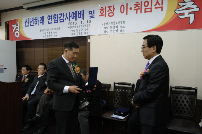 À̾î ÇϴüҸ®Áßâ´ÜÀÇ Ãà°¡¿Í 2015³â ¼Û±â·Ã Á÷ÀüȸÀå Á¤È«Ã¤ ¸ñ»ç¿Í ¼Û±³·Ã Á÷ÀüȸÀå ±è½Â±Ô ¸ñ»ç, ¼ÛÀå·Ã Á÷ÀüȸÀå ÇÑâÁ÷ Àå·ÎÀÇ ÀÌÀӻ簡 ÀÖ¾úÀ¸¸ç, 2016³â ¼Û±â·Ã ȸÀå ±èâÅà ¸ñ»ç¿Í ¼Û±³·Ã ȸÀå ±èÇö¿õ ¸ñ»ç, ¼ÛÀå·Ã ȸÀå Á¶¼ø¸í Àå·ÎÀÇ ÃëÀÓ»ç ÈÄ ÃëÀÓÆÐ¿Í °¨»çÆÐ Àü´Þ½ÄÀÌ ÁøÇàµÇ¾ú´Ù
