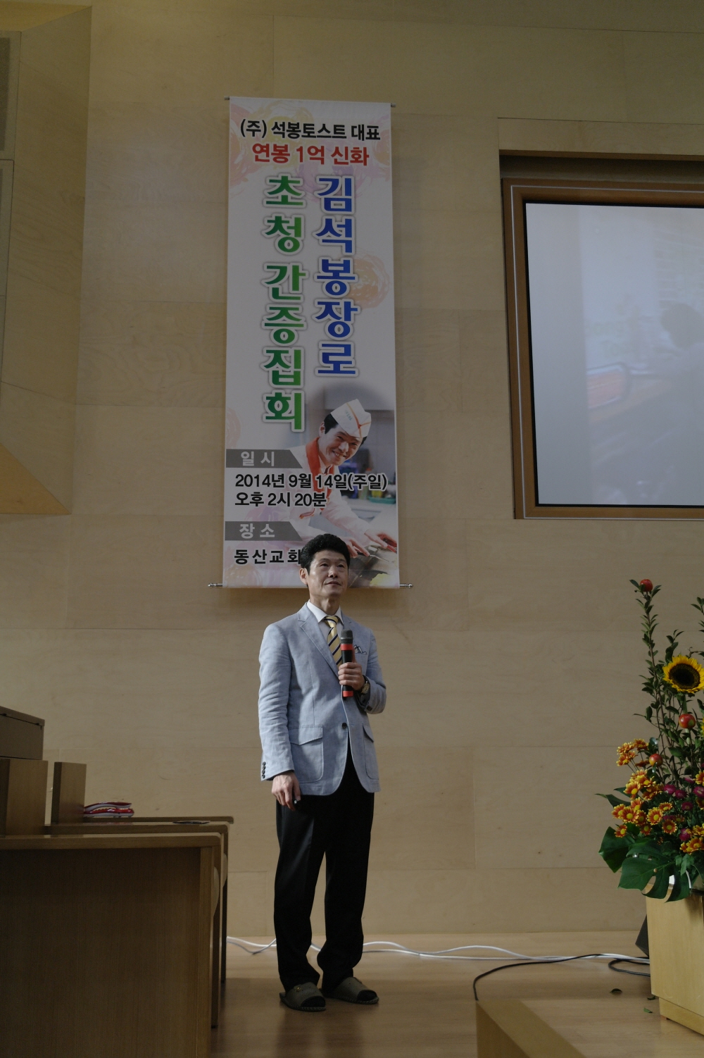Áö³­2014³â9¿ù14ÀÏ(ÁÖÀÏ)¿ÀÈÄ2½Ã30ºÐ ÆòÅýà ¹®È­ÃÌ·Î21¿¡ À§Ä¡ÇÑ µ¿»ê±³È¸(ÀÌÃá¼ö´ãÀÓ¸ñ»ç)´Â µ¶½ÇÇÑ Å©¸®½ºÃµÀ¸·Î¼­ ¼º°øÇÑ »ç¾÷°¡·Î »ì°í ÀÖ´Â ±è¼®ºÀ Àå·Î¸¦ ÃÊûÇÏ¿© °£ÁõÁýȸ¸¦ ¿­°í Å« ÀºÇý¿Í µµÀüÀÇ ½Ã°£À» °¡Á³´Ù.