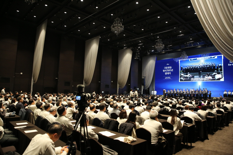 ±Øµ¿¹æ¼Û(ÀÌ»çÀå ±èÀåȯ ¸ñ»ç)ÀÌ Áö³ 5ÀÏ ´ëÀü ICCÈ£ÅÚ¿¡¼ ¡®Ã¢»ç 70Áֳ⠹ߴë½Ä¡¯À» ¿°í 1956³â ⸳ ÀÌÈÄ 70³â°£ ¹æ¼Û »ç¿ªÀ» ÀεµÇϽŠÇϳª´ÔÀÇ ÀºÇý¸¦ µ¹¾Æº¸¸ç »õ·Î¿î 70³âÀ» ÇâÇÑ ¹æ¼Û ¼±±³ÀÇ »ç¸íÀ» ÀçÈ®ÀÎÇß´Ù. ÀÓÁ÷¿ø°ú ¿î¿µÀ§¿ø, ¸ñȸÀÚ µî 300¿©¸íÀº ½½·Î°ÇÀ» ÈûÂ÷°Ô ¿ÜÄ¡¸ç »õ·Î¿î µµ¾àÀ» ´ÙÁüÇß´Ù.