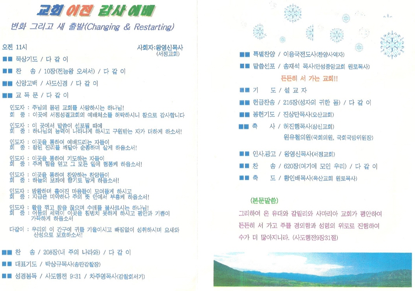 ¼­Á¤¼º°á±³È¸(´ãÀÓ¸ñ»ç ¿Õ¿µ½Å)¿¡¼­ ¼­Á¤Ä§·Ê±³È¸ Á¤È£Àϸñ»ç µî