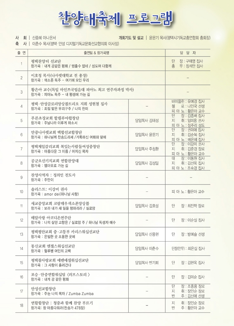ÆòÅÃ.¾È¼º½Ã µðÁöÅб⵶±³¹®È¼±±³ÇùÀÇȸ<www.ptdcc.net>´Â ¿À´Â2016³â5¿ù22ÀÏ(ÁÖÀÏ)¿ÀÈÄ7½Ã ÆòÅýà ¾ÈÁßÀ¾ ¾ÈÁß·Î84¹ø±æ47 ¾ÈÁß³ª»ç·¿±³È¸(´ãÀÓ¸ñ»ç À±¹®±â 031-681-3558 )¿¡¼ Á¦9ȸ ÆòÅÃ.¾È¼º½Ã ±³È¸¿¬ÇÕ Âù¾ç´ëÃàÁ¦°¡ ¿¸°´Ù.