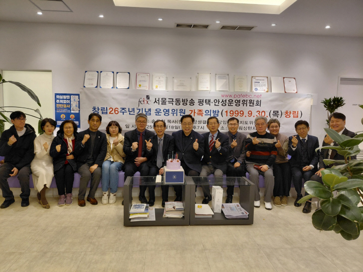 ¼¿ï±Øµ¿¹æ¼Û¿î¿µÀ§¿øÈ¸ÆòÅ᤾ȼºÁöȸ(ÁöȸÀå ÇÑ»ó¿Á Àå·Î, ÀÌÇÏ ÆòÅÃ.¾È¼ºÁöȸ)´Â Áö³ 11¿ù18ÀÏ(È) ¿ÀÈÄ7½Ã ÆòÅýà ºñÀüµ¿ ¼ÒÀç ÆòÅà ¿ö½ÌÅÏÄ¡°úÀÇ¿ø(¿øÀå Á¶¿µ¿í ¿î¿µÀ§¿ø)¿¡¼ ±Øµ¿¹æ¼Û ÆòÅ᤾ȼº ¿î¿µÀ§¿ø °¡Á·µéÀÌ Âü¼®ÇÑ °¡¿îµ¥ ÆòÅ᤾ȼºÁöȸ ⸳ 26Áֳ⠱â³ä °¨»ç¿¹¹è¸¦ °³ÃÖÇß´Ù.