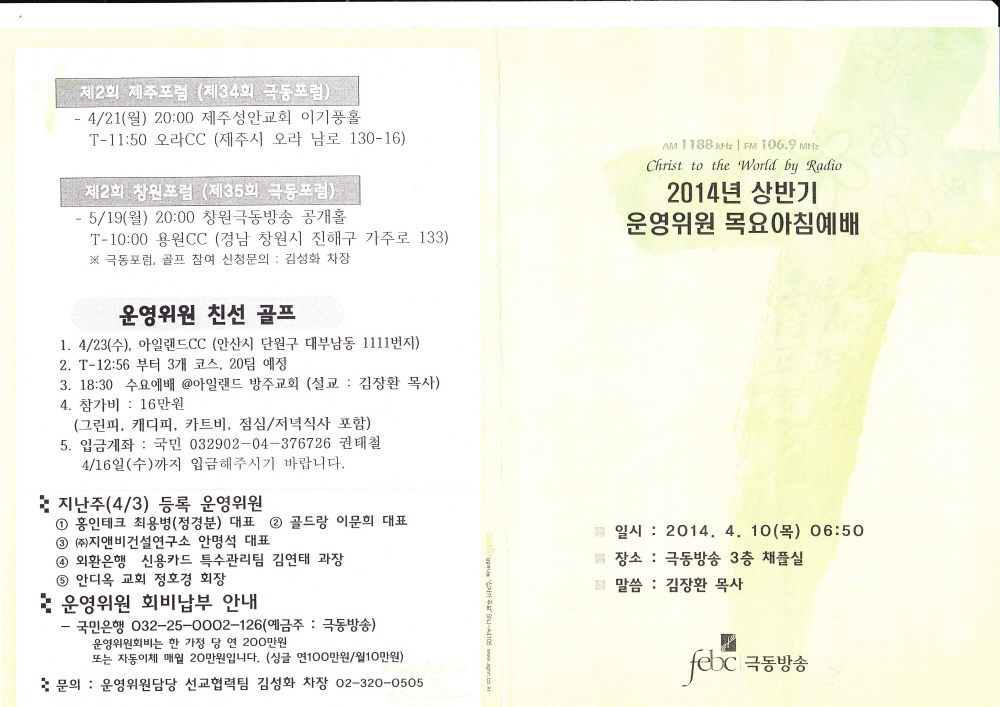 2014³â4¿ù10ÀÏ(¸ñ) ±Øµ¿¹æ¼Û¿î¿µÀ§¿ø Á¶Âù¿¹»©