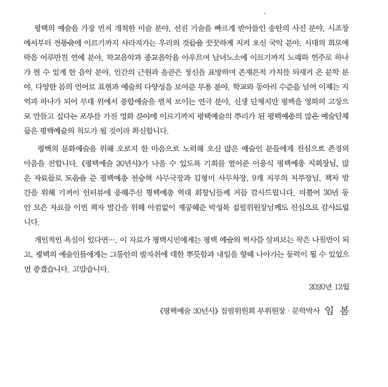 Çѱ¹¿¹ÃÑ °æ±âµµ¿¬ÇÕȸ ÆòÅÃÁöȸ¿¡¼ Áö³ 2020³â12¿ù31ÀÏ ÀÚ·Î 30³â»ç°¡ ¹ß°£µÇ¾ú½À´Ï´Ù.
